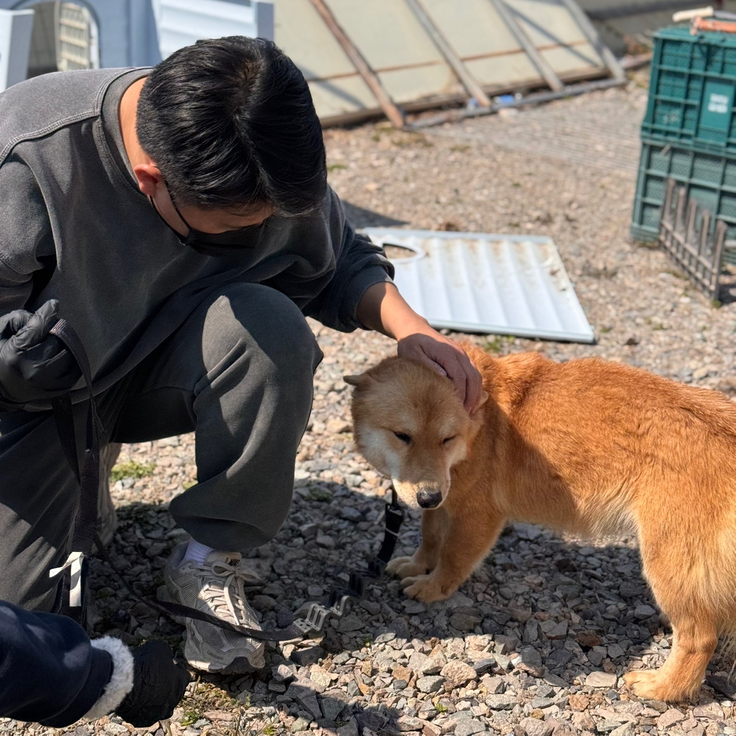 노랑이 오늘 급 얌전 오늘에 왕 수혜자 노랑이 (정말 좋아 했음 봉사자분들이 산책 시켜주자 해맑게 웃음)