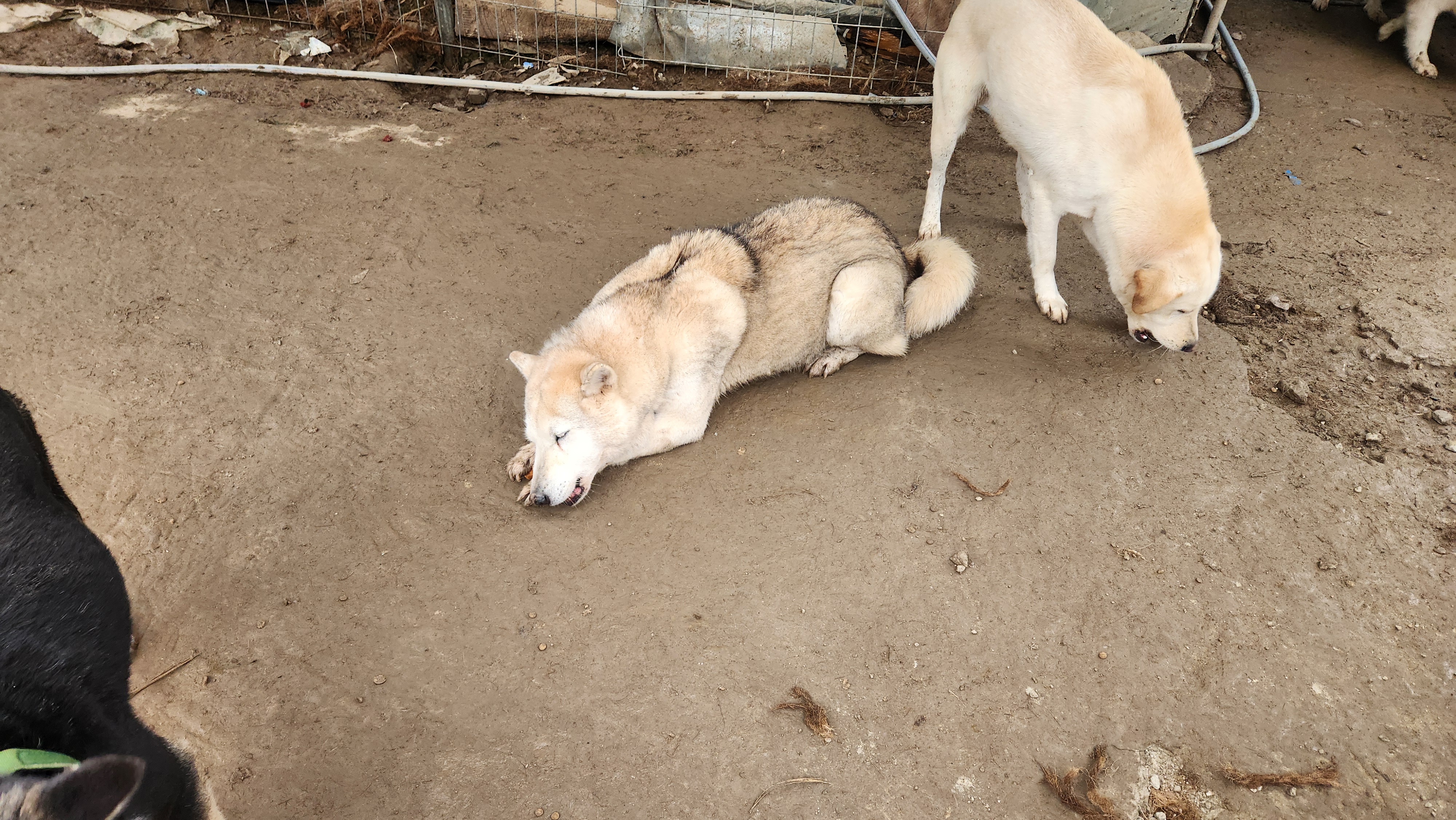 허스키 허순이는 덩치만컷지 매우순딩순딩 하다 그옆의 강아지는 겁나이다 겁나게 뭐가 많아 겁나가 아니고 겁이 몹시 많아 겁나이다
